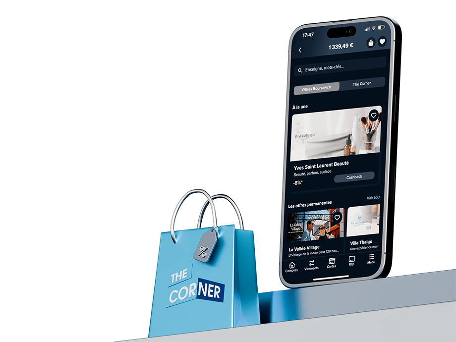 The Corner, c'est le réflexe à adopter pour économiser sur ses dépenses du quotidien : cashback(1), réductions immédiates ou bons d'achat, nous négocions pour vous les meilleurs avantages possibles auprès de nos partenaires. En tant que client BoursoFirst, vous bénéficiez en plus d'expériences privilégiées et d'avantages inédits.